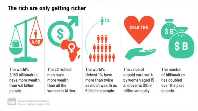 - The world's 2,153 billionaires have more wealth than 4.6 billion people.