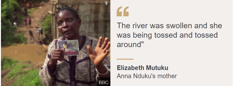 Anna Nduku, 19, fell into the Kandisi river near Ongata Rongai, on the outskirts of the capital, Nairobi, on Tuesday.