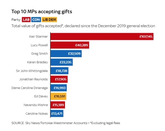 We also asked for comment on the fact Sir Keir is top of the table for gifts and hospitality, excluding legal donations.