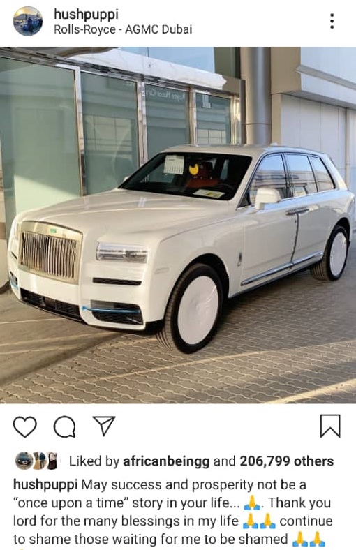 In his last post before his arrest, Hushpuppi shared a photo of a white Rolls-Royce vehicle with a cryptic caption.