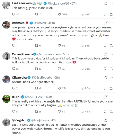 News of the passing of Nigeria’s former President Muhammadu Buhari has sparked a wave of contrasting reactions on social media, with Nigerians taking to X (formerly Twitter) to express emotions ranging from deep sorrow to bitter resentment.