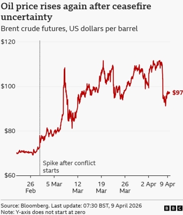 Global oil prices have risen as concerns grow over whether a fragile US-Iran ceasefire will hold after Israel launched a wave of strikes on Lebanon.