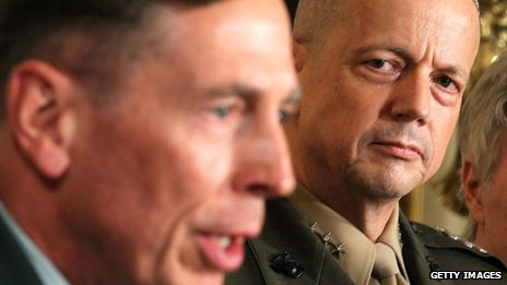 Gen Allen, a four-star Marine general, succeeded Gen Petraeus as the top American commander in Afghanistan in July 2011.