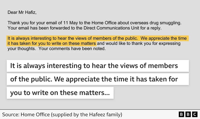 The Home Office told the BBC it does not comment on individual correspondence.