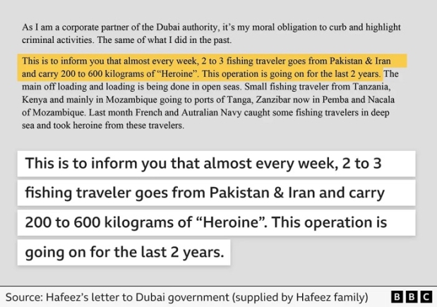 Hafeez would also periodically write letters to the authorities in the UAE and UK informing on rival cartels, under the guise of being a concerned member of the public.