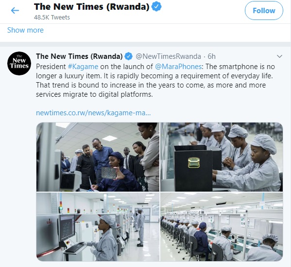 President Paul Kagame said he hoped the phone would increase Rwanda’s smartphone usage, currently at around 15%
