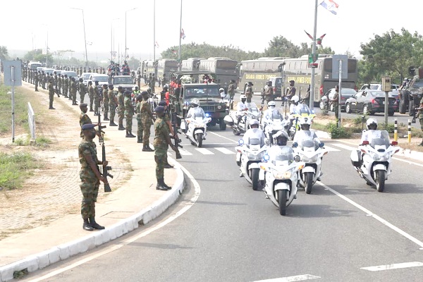 The cortege carrying the remains of former President Rawlings to the Military Cemetery near the Burma Camp.
