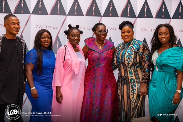 Mrs Owusu-Ekuful with from right: Claudia Lumor , Founder, Glitz Africa; Nana Ama Dokua Asiamah-Adjei, Member of Parliament for Akuapem North; Ama Pomaah Boateng, Deputy Minister for Communications and Digitalisation; Lexy Boahene, team lead for Ghana Cares Unit under the Ministry of Communications and Digitalisation and Mr Alexander Arphul, Ag. Chief Director Ministry of Communications