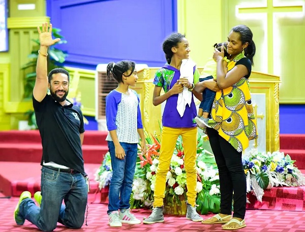 • Okyeame Kwame, the Rap Doctor (left) and his two children who are also models and brand ambassadors