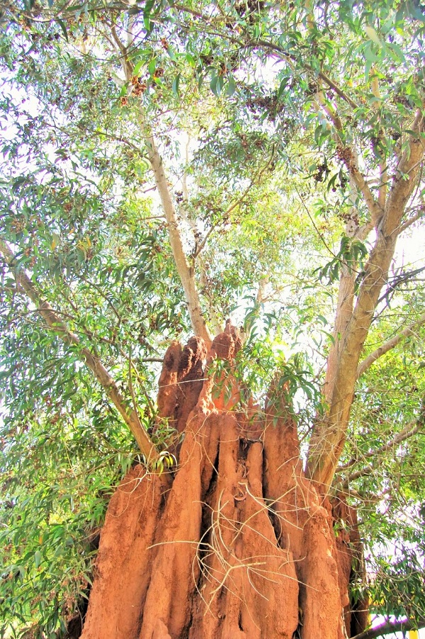 The symbiotic harmony between the tree and the anthill has resulted in a beautiful image which holds first-time visitors to the place captive.