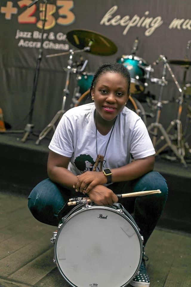 Whether playing with the all-female Lipstick band, her own Liagiba Africa GH project or as a session drummer for a variety of other artistes, Abigail knows how to navigate her way around the snare and kick drums, Tom Toms and cymbals to keep the music together.
