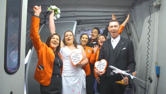 Cathy said she wanted to do "something really memorable" for their wedding and so posted on Jetstar's Facebook page about her idea to get hitched in the air.