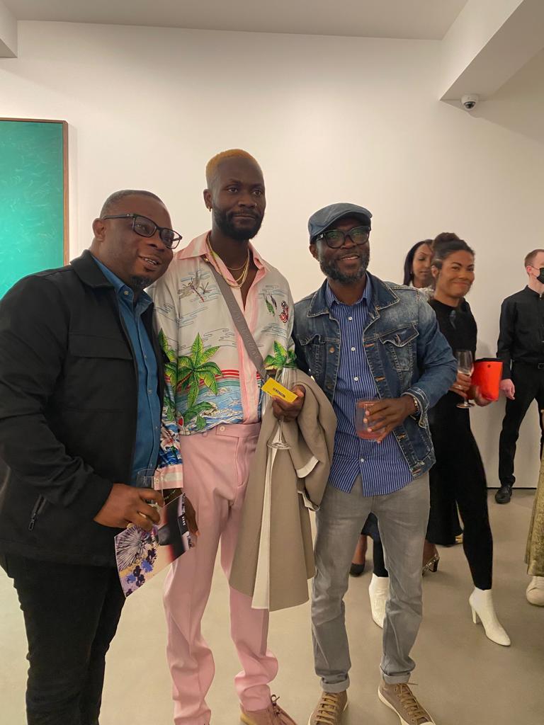 Mr Sam Dentu, (left) posed with Amoako Boafo, (Middle) and another Ghanaian artist, Kwasi Agyare who is one of the 10 artists displaying their at the Sound Out being organized by the Ghana Export Promotion Authority.