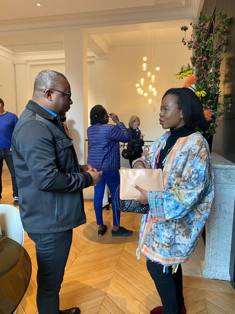 Sam Dentu holding discussions with Ms Olivia Anani at the Mariane Ibrahim gallery in Paris