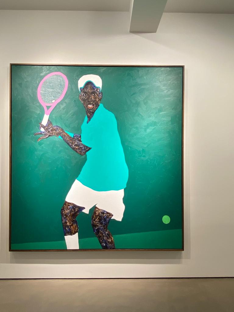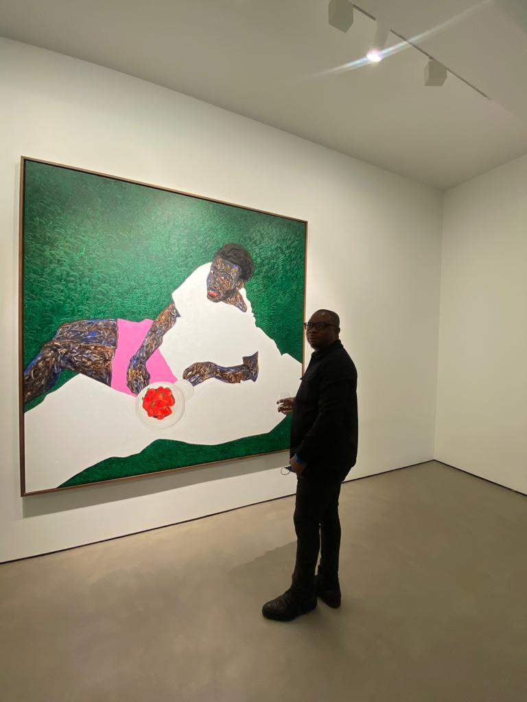 The gallery was exhibiting the works of Amoako Boafo, a Ghanaian contemporary artist known internationally for his portraits of figures typically done on solid colour backgrounds.