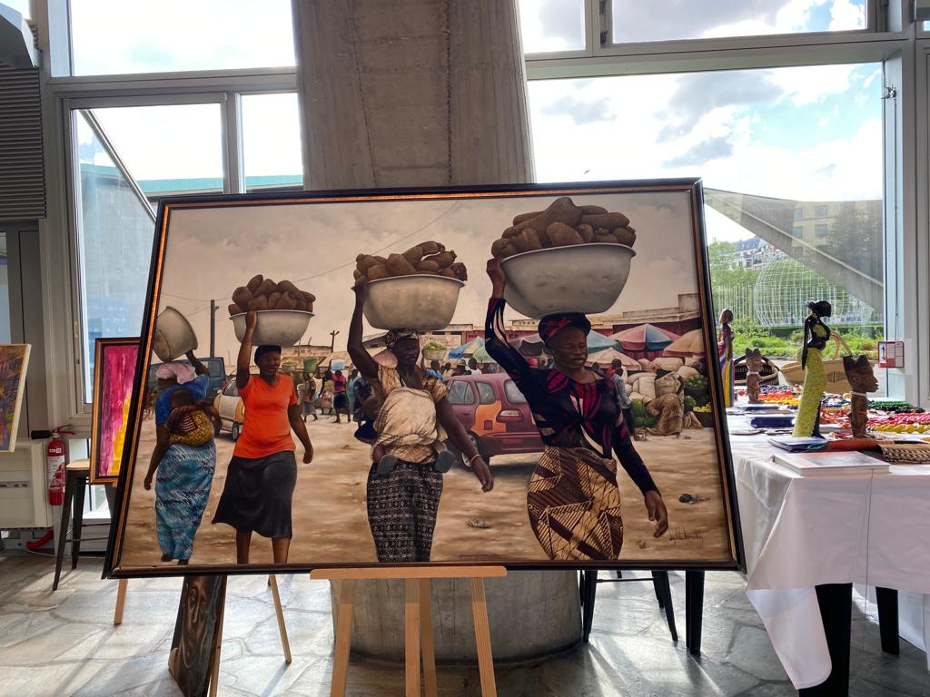 Larry Otoo, an artist, exhibiting one of his artworks at the Sound Out Exhibition underway at the UNESCO office in France. The week-long exhibition is being organized by the GEPA in collaboration with UNESCO, the French Embassy in Accra and the Ghana Embassy in Paris, France. pic.twitter.com/YXeThgtR57