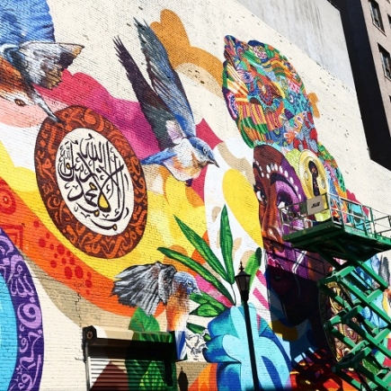 Located at Treat Place, within the Four Corners Public Arts project, between Branford Place and Williams Street, the mural was commissioned by the City of Newark Division of Arts and Cultural Affairs, organized by Four Corners Public Arts, and supported by Invest Newark. It fittingly graces Branford Place, the former site of the Islamic Society of Essex County and its historic mosque, adding an even deeper cultural resonance to the artwork.
