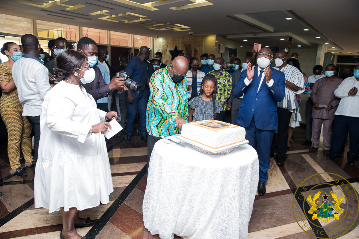 He returned to the Jubilee House, the seat of government to meet a surprise birthday cake organised for him by the Vice President, Chief of Staff, senior government officials, and staff at the Office of the President.
