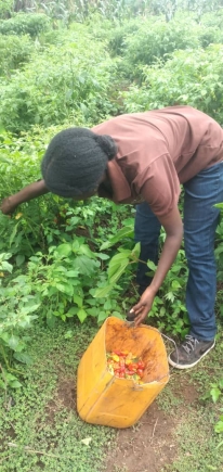 Miss Abena Kusiwaa operates her pepper farm at Techiman, Bono East Region