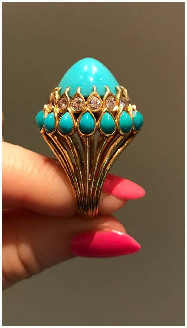 A cocktail ring is a piece of jewellery that is larger than normal rings and is designed to attract attention with its size and colours.
