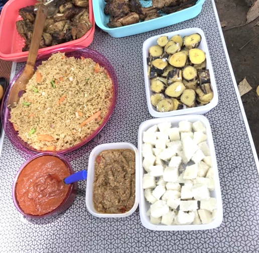 However, the speed with which they prepared the ampesi ( cooked yam and ripe plantain), rice with veggies (emphasis on crunchy veggies) and grilled pork and chicken was admirable.