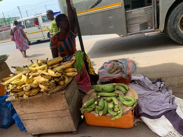 Five fingers of ripe plantain sold at GH¢20 at the Kaneshie market