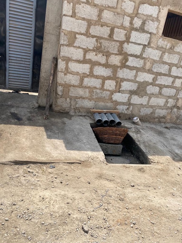 This reporter, however, saw residue from the production of the Wele in the drains in front of the house and the stench hang in the air long before reaching the premises.