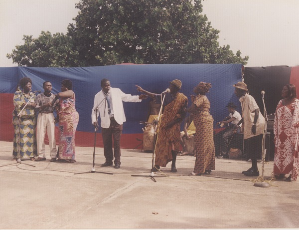 Ms Tetteh (left) in a stage play with members of the Bomkasa Theartre Group