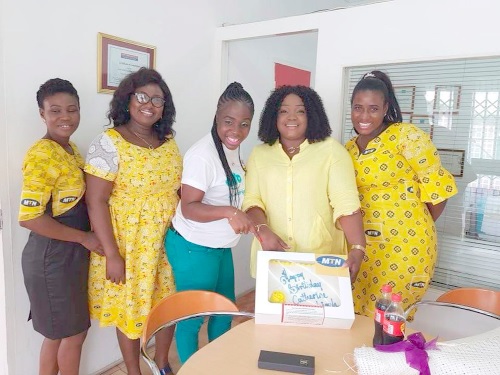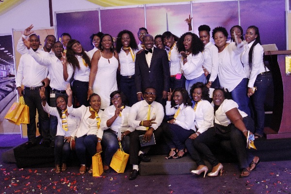 Vice President of MTN West and Central Africa, Mr. Ebenezer Asante (in suit) and Mrs Jemima Kotei Walsh (arrowed) with MTN Customer Relationship Managers