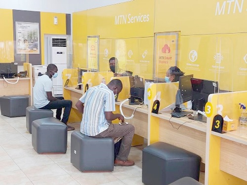 Customers being attended to at the MTN Service Centre at Osu in Accra