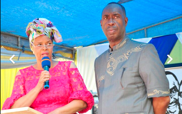 Mrs Florence Adjepong, the Proprietress of the Alpha Beta Education Centre, delivering a speech. Standing next to her is Rev. Adjepong.