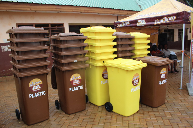 FanChoco has presented 100 dustbins for distribution in a number of basic schools in Accra and Kumasi to aid better waste management and to help keep the environment clean.