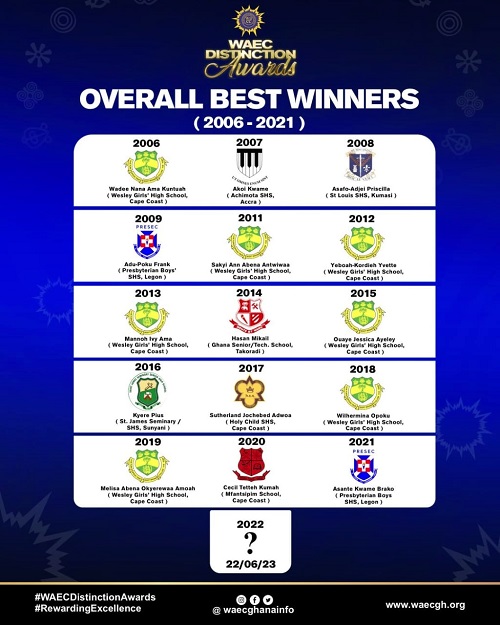 It is held annually to reward the top performers in the previous year’s WASSCE for school candidates. By the tenets of the criteria for the awards, only candidates with a minimum of eight Grade A1s without any hint of impropriety are eligible for consideration.