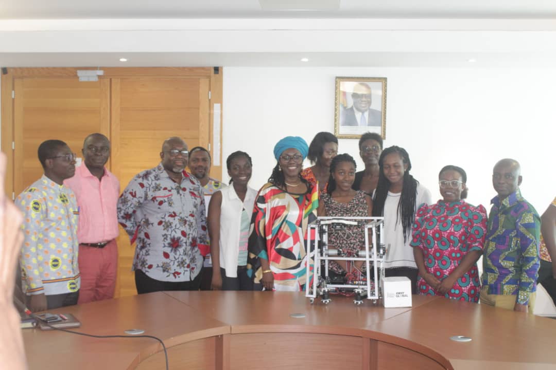 Interacting with a team of girls who will be representing Ghana in this year's International Robotics Competition in Mexico City, the Minister of Communications, Mrs Ursula Owusu Ekuful said