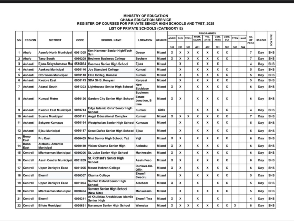 A statement released by the Ministry of Education on Monday said the inclusion of private institutions was aimed at reducing congestion in public senior high schools and expanding access to quality education, regardless of whether students attend public or private schools.