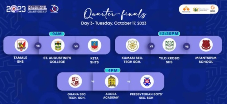 The semi-finals promise thrilling matches, as Wesley Girls' High School, Achimota School, and St. Louis SHS, having already secured their positions, gear up for a showdown on Thursday, October 19, 2023.
