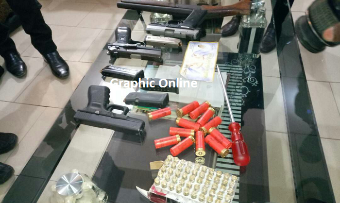 The Regional Commander said the suspect mentioned Isreal Valentine Edo, Nana Yaw and Mike Osuji as the persons who asked him to bring the weapons to assist them rob a gold businessman at the Gbani mining site in the Talensi District and led them to arrest the suspects who were lodging at the Kings and Queens hotel at Bukere a suburb of Bolgatanga.