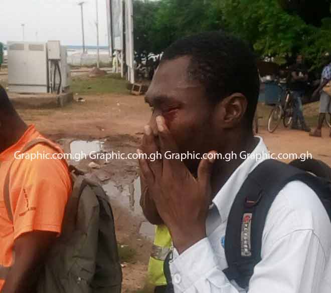 Also injured in the clash was the Operations Commander of the Tema Police Command, who sustained a cut in the lower left eye after the workers pelted the police with stones.