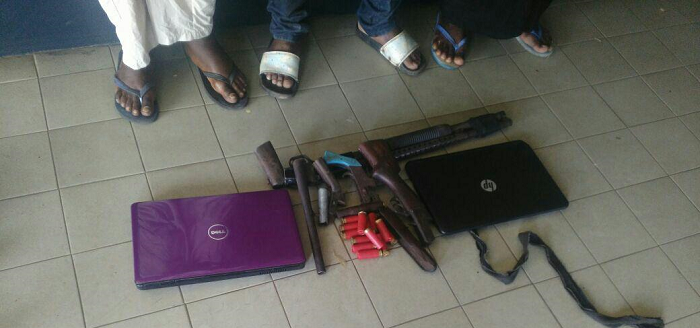 The suspects, who were arrested with weapons, including two pistols, a shotgun and a pump action gun, are said to be behind two other robbery attacks on the Cocoa Palace Lodge and a company near the Nungua Senior High School.