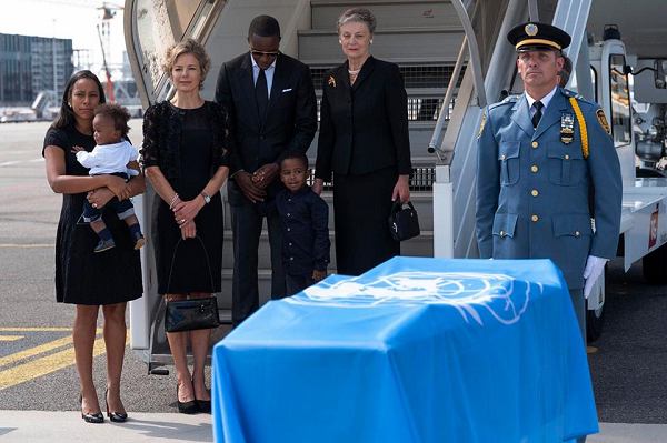 President Akufo-Addo was at hand to receive the casket, which was draped in the colours of the UN.