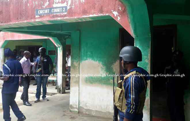 According to Graphic Online's Kumasi reporter, Donald Ato Dapatem, there is a heavy presence of armed police personnel at the Kumasi Circuit Court Two where the suspects are to be arraigned.