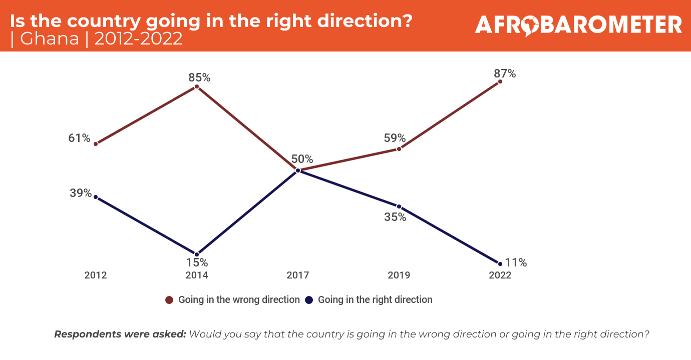 Almost 9 out of 10 Ghanaians say the country is heading “in the wrong direction”