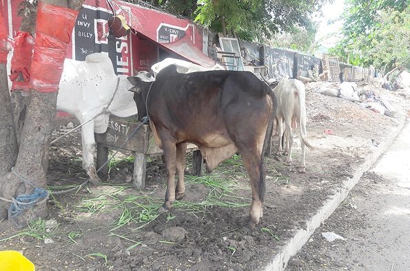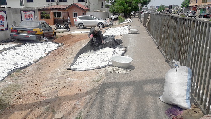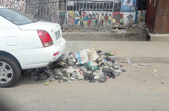 Motorbike repairers use portions of the road for their trade while others cover and park their cars by the roadside despite the numerous signs of ‘no parking’.