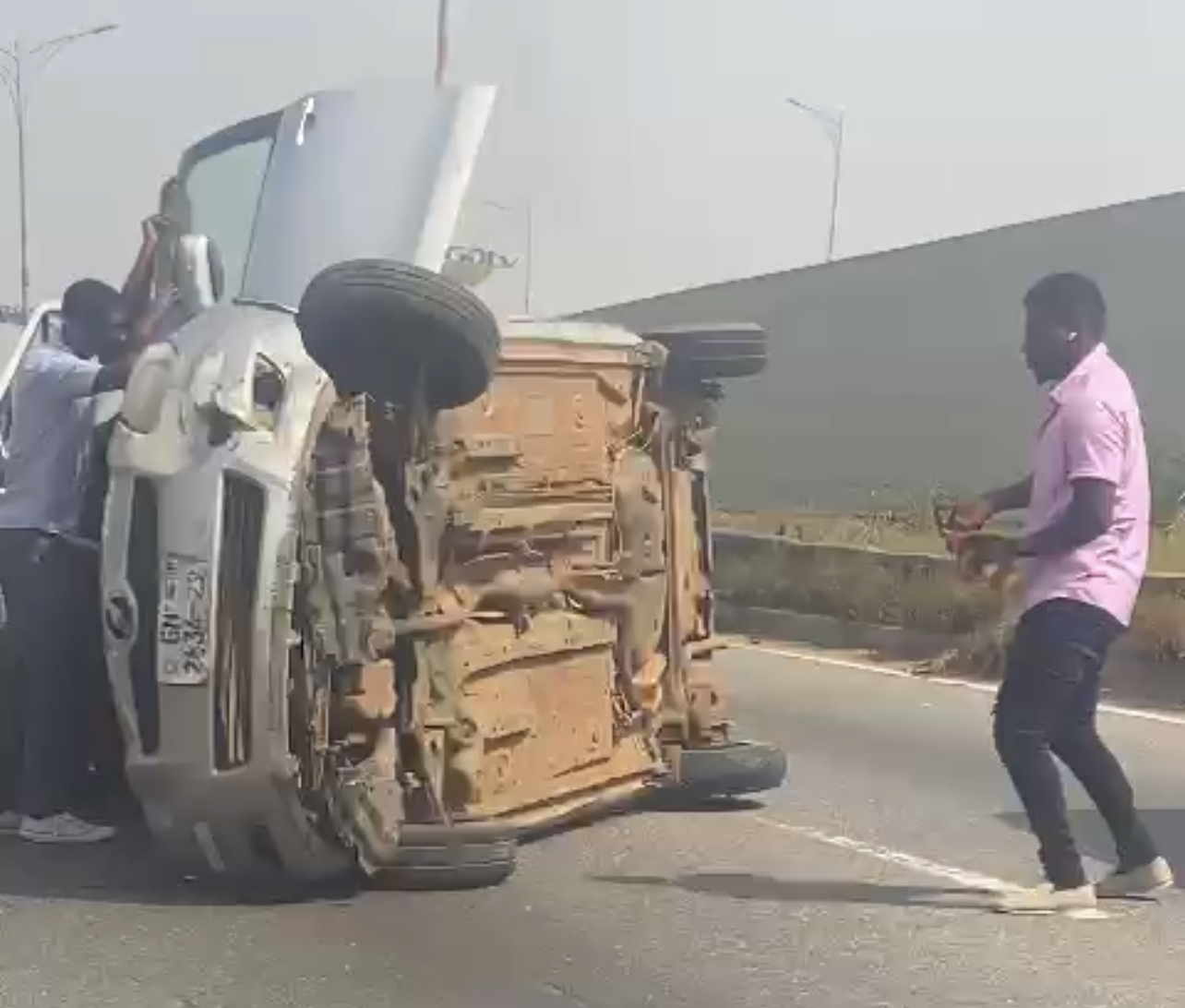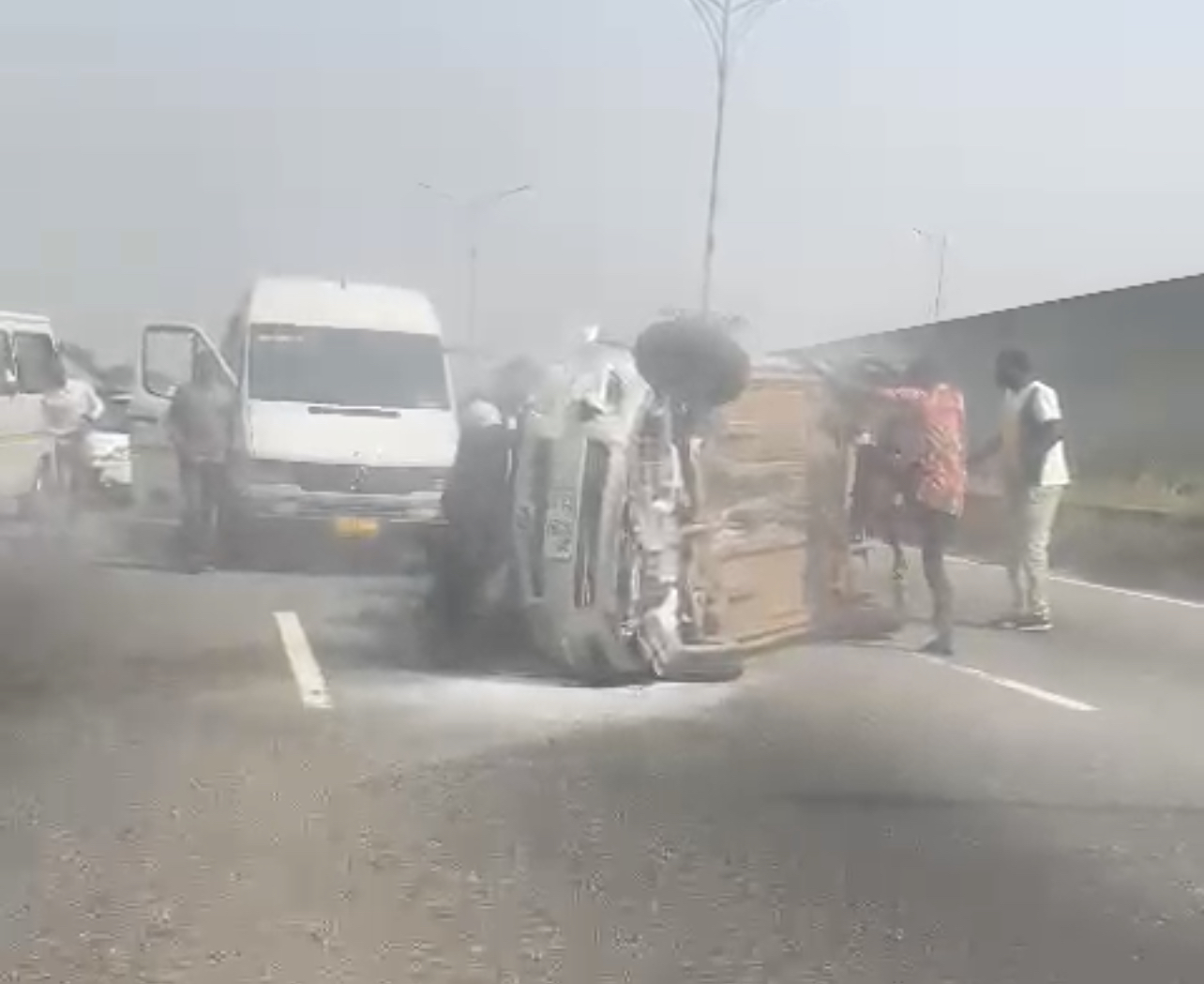 A vehicular accident involving a Toyota Vitz sedan on Friday afternoon on the N1 Highway towards the Abeka section caused a hold up on the highway.