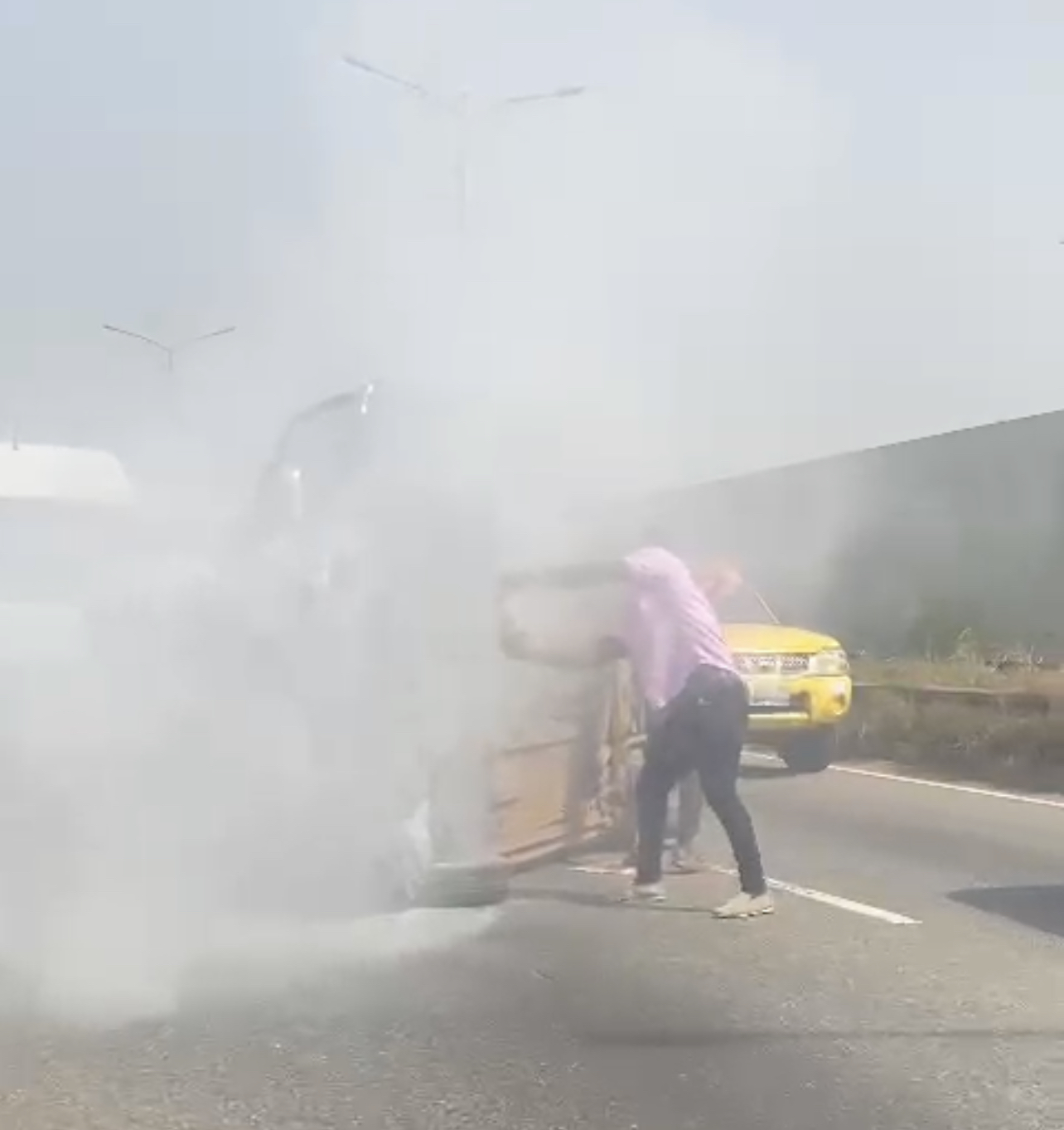 A citizen response team helped to douse a possible flame, pushed and helped the vehicle to move back on its tyres.