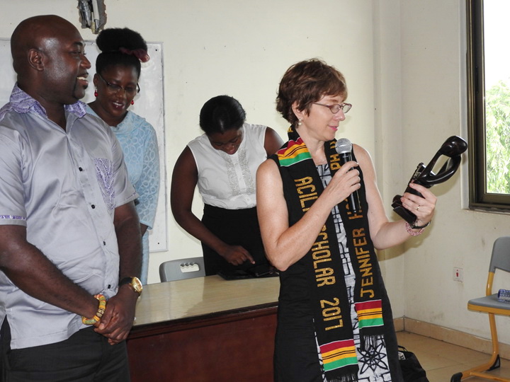 A US Fulbright Specialist, Dr. Jennifer Hasty has been conferred with the “ACILA Scholar” title by research and education think tank, Africa Center for International Law and Accountability (ACILA) for enhancing Ghanaian and African scholarship.