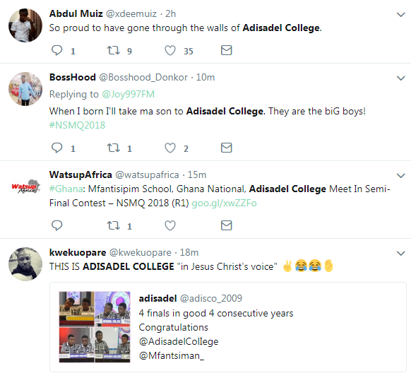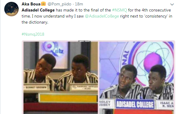 Adisadel College has qualified for the final round of the National Science and Maths Quiz after beating Mfantsipim and Ghana National College with 4 points and 18 points difference respectively.