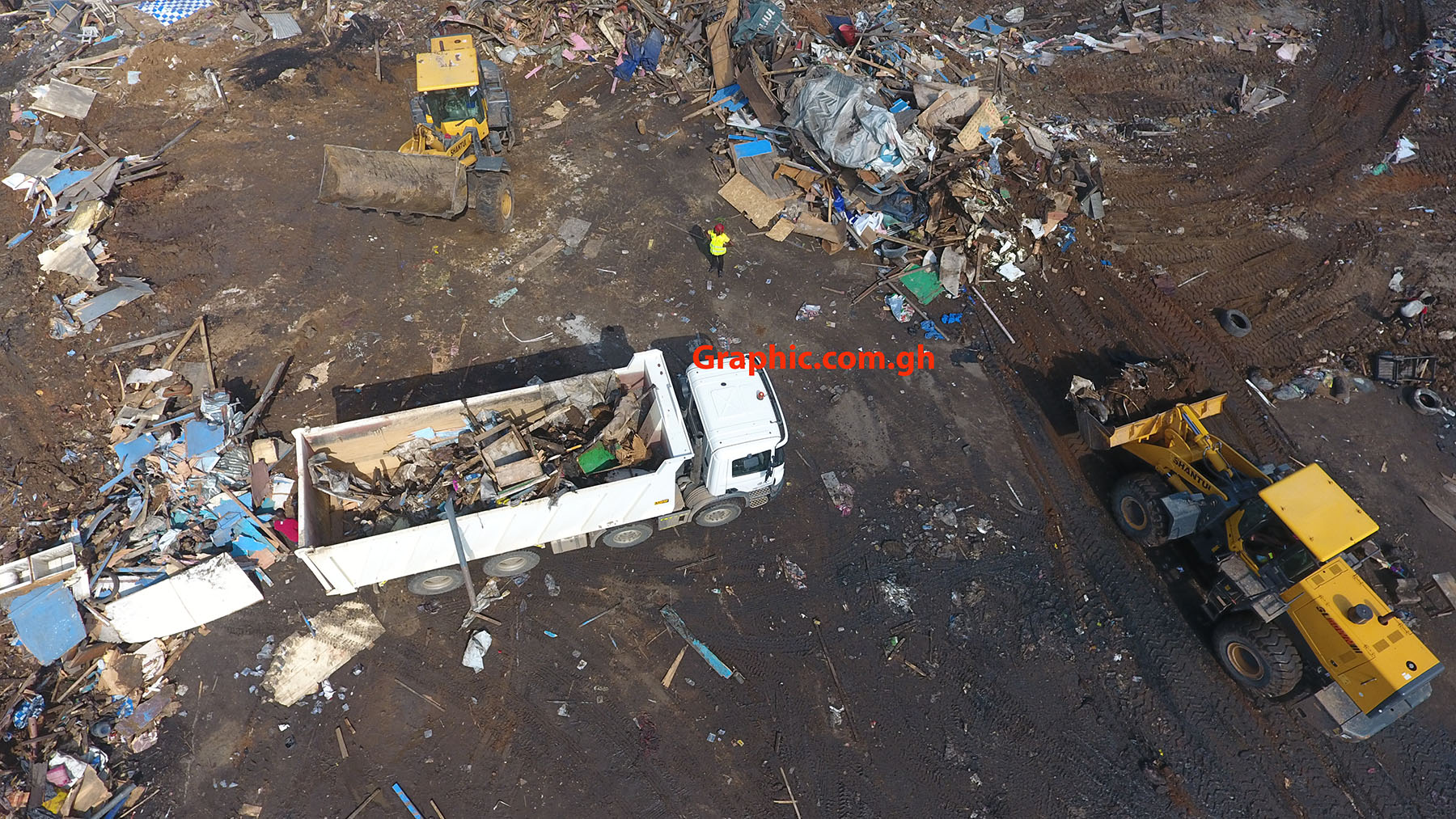 After the demolition of the structures, trucks were loaded with the rubbish, which was transported to the Nsumia landfill site in Nsawam.