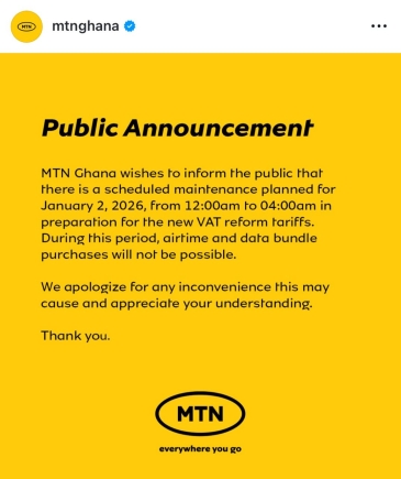 MTN Ghana has notified its customers of an essential service interruption early in the new year, linking the planned downtime directly to upcoming changes in national tax policy.