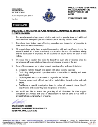 Attached below is a copy of a statement issued by the police on how it was handling the post election issues.